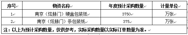一、招標(biāo)項(xiàng)目名稱:2023-2025年合作品牌條、盒包裝紙采購之南京(炫赫門)項(xiàng)目。