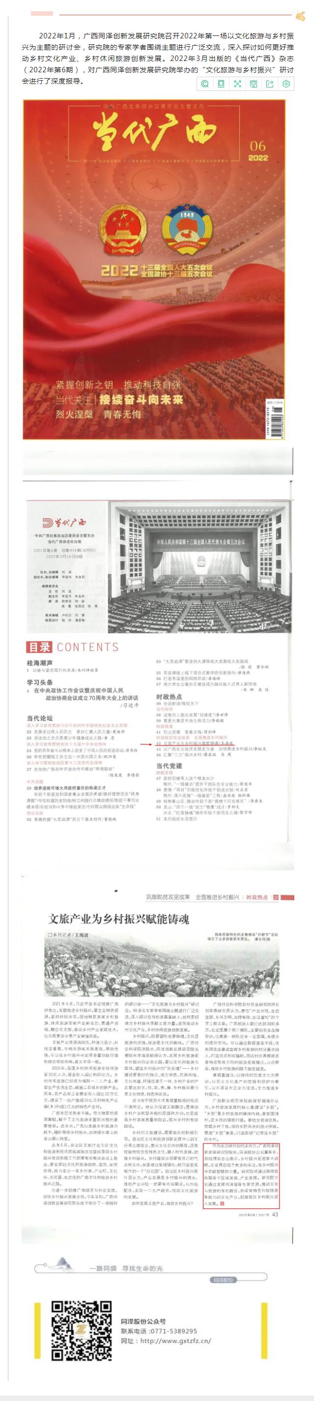 同澤研究院“文化旅游與鄉(xiāng)村振興”研討會獲《當(dāng)代廣西》雜志報導(dǎo)